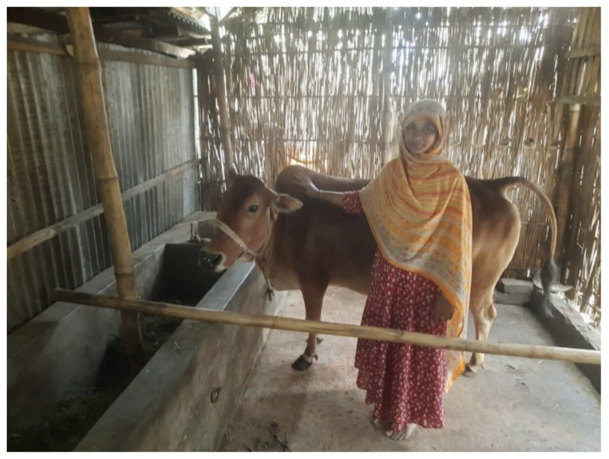 In the remote village of Madhya Belka in Gaibandha, Munni Begum, a 36-year-old homemaker from a low-income household, has transformed her long-held dream of financial independence into a tangible livelihood. With her husband relying on irregular daily wage labor, Munni joined the Madhya Belka Village Savings and Loan Association (VSLA) supported by the PRODRIPTA project, implemented by SKS Foundation with support from CARE Bangladesh, where she first learned to save, access credit, and manage finances. When small VSLA loans proved insufficient to launch her ambition of livestock rearing, PRODRIPTA facilitated her inclusion in formal banking through a “10 Taka” account with NRBC Bank PLC, which subsequently recognized her financial discipline and provided a BDT 50,000 small enterprise loan. Munni invested in a heifer, whose value has already grown to approximately BDT 82,000, marking her first significant asset and a turning point in her family’s economic stability. Beyond increased income prospects, Munni has gained confidence, independence, and social recognition, inspiring other women in her community to pursue income-generating activities. Her journey demonstrates how integrated approaches—combining community savings, inclusive finance, and institutional partnerships—can unlock women’s potential and create lasting pathways out of poverty.